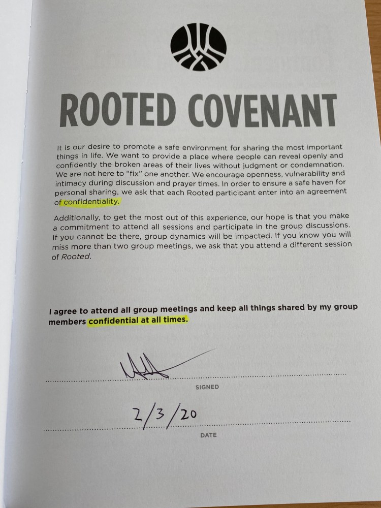 Grace and peace to you my faith family. Tonight is a soft launch for The Rooted group at Calvary Jupiter. I read and signed my Root Covenant as shown below. Please keep this group in your prayers for amazing growth without relationships with God and each other.